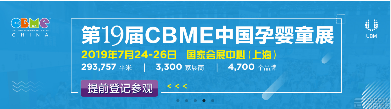 第19屆CBME中國孕嬰童展將于2019年7月24-26日在國家會展中心(上海)舉辦, 同期CBME孕嬰童食品展將于 7月25-27日在上海世博展覽館舉辦。
