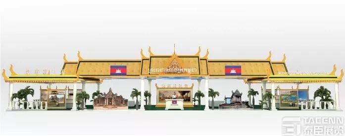 柬埔寨展臺的總體規劃將彰顯柬埔寨特色:整個展臺及屋頂仿制柬埔寨皇宮;展臺大門仿制柏威夏寺大門;柬埔寨國家名稱及國旗將分別放置在屋頂;屋頂由柱子上的小精靈支撐;展館門口擺放各色綠植鮮花;服務臺設置在展館中央,并放置標有柬埔寨商務部字樣的擺臺。其余空間為展示區,主要用來展示柬埔寨特色商品,發放經貿宣傳資料,推介高棉文化以及旅游和投資。
