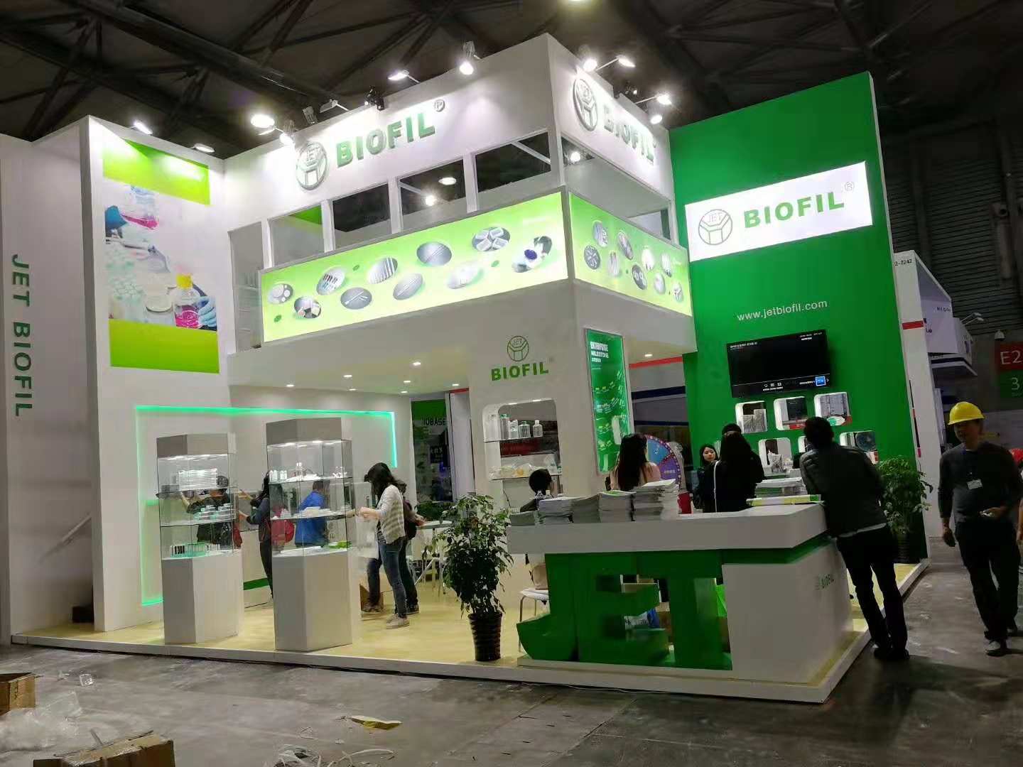 1、雙層展臺特裝構造:展臺可按照傳統方式搭建或采用模塊化材料,構造材料標準適用于地板、圍板、天花板。樓梯、開放的展區及會客區必須距離過道1米以上。相鄰展臺之間應有3米間距。如果不可能保持上述間距,則應安裝不低于2米高的屏風使兩展臺完全隔離。面向相鄰展臺的一側應是白色,外觀干凈空白。相鄰展臺可將這一面用做宣傳。