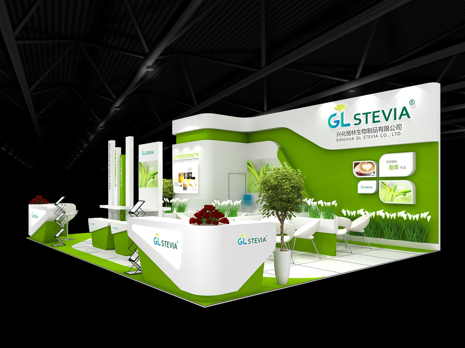 2、盡量合理增加發光體。會展設計搭建新穎與否直接關系到最終的展示效果,因此設計師需以美的形式作為設計原則,以恰當的、合適的展示形式來表達主題內容。設計師將會展設計的最后成品當成一件有形式意味的藝術品來創造,其藝術性絕不是隨心所欲、簡單的堆砌,而是根據對參展商意圖與展品特性的認識、了解,借助當今科技手段,通過一定形式的研究探討并進行藝術的升華,創造出一種和諧統一、震撼人的氣氛。展位位置不好,非常多方面就是指采光不好。所以在會展設計上要刻意增加發光體的數量和增大發光體的體積,讓整個展位都亮起來,以吸引觀眾注意力。具體做法可以設計安裝一些帶有公司LOGO的燈箱、發光墻、燈柱等,比如直接將整個接待臺設計成發光臺。甚至直接將整個會展設計成發光體,如安裝成組的格柵燈,排成行或方格網;或使用槽燈照明方式方法照亮;還可使用直管型熒光燈做成大面積的發光體;更可運用先進的照明技術,使整個場地的天棚、墻面和地面都亮起來。
