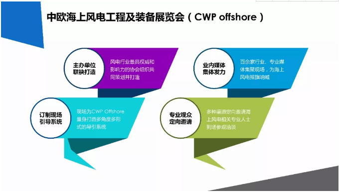 中歐海上風(fēng)電工程及裝備展覽會(huì)(CWP offshore)將與全球頂級(jí)風(fēng)能展CWP同期舉辦,屆時(shí)必將分享CWP十年業(yè)內(nèi)頂級(jí)資源的沉淀紅利,在專業(yè)觀眾數(shù)量、質(zhì)量及業(yè)界曝光率等方面為參展企業(yè)提供保障性收益。